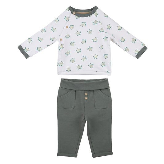2 Piece Baby Outfit in Organic Cotton – Floral Top & Ribbed Pants